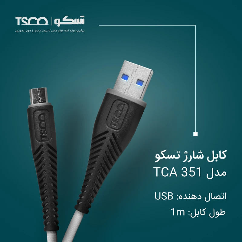 کابل تبدیل USB به microUSB تسکو مدل TCA 351 با طول 1 متر، انتخابی ایدهآل برای کسانی که به دنبال یک کابل با کیفیت و مقاوم برای شارژ و انتقال داده هستند. با طراحی مقاوم در برابر کشش و خمشدن، این کابل عمر مفید بیشتری دارد و سرعت انتقال اطلاعات را به حداکثر میرساند. هماکنون خرید کنید و از اتصال سریع و مطمئن لذت ببرید!